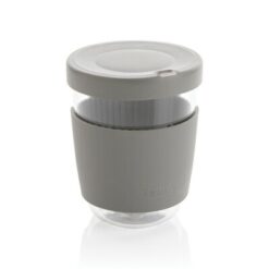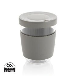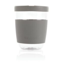 Szklany kubek podróżny Ukiyo 360 ml z nadrukiem Twojego logo, materiał: szkło, silikon, kolor: szary