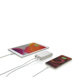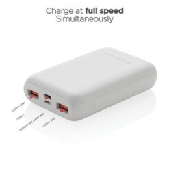 Power bank 10000 mAh, 2 wyjścia USB oraz wyjście USB typu C pozwalają na ładowanie do 3 urządzeń jednocześnie, szybki port USB typu C 18W pozwala naładować telefon do 50% w około 30 minut, wbudowany akumulator klasy A, wejście USB typu C 5V/3A, 9V/2A, wejście micro USB 5V/2A, 9V/2A, wyjście typu C 5V/3A, 9V/2A, 12V/1.5A, wyjście USB 5V/2.4A, 9V/2A, 12V/1.5A, produkt nie zawiera PVC, opakowanie nie zawiera plastiku, ślad węglowy produktu: 5,22 kg CO2