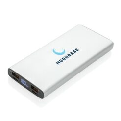 Szybki power bank 10000 mAh z nadrukiem Twojego logo, materiał: plastik, aluminium, kolor: srebrny