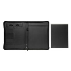 Teczka konferencyjna A4 z notatnikiem (20 kartek z 64 g/m2 papieru z recyklingu w linie), zamykana na zamek błyskawiczny, wewnątrz kieszeń i stojak na telefon, 2 kieszenie na wizytówki i pętla na akcesoria do pisania, wykonana w 100% z PU z recyklingu z certyfikatem RCS (Recycled Claim Standard) który gwarantuje, że wykorzystane materiały pochodzą z recyklingu, całkowita zawartość materiału z recyklingu obliczona w oparciu o wagę całkowitą przedmiotu: 14%, nie zawiera PVC