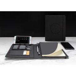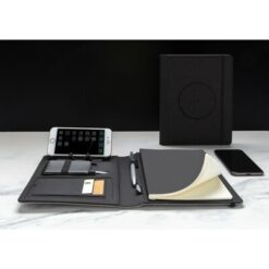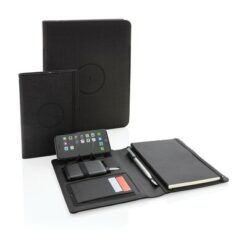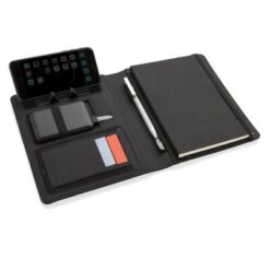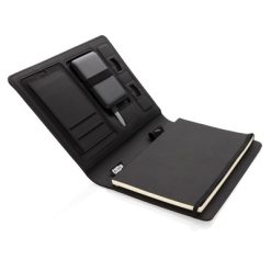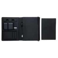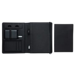 Teczka konferencyjna A5 Air, power bank 5000 mAh z nadrukiem Twojego logo, materiał: pu, rpet, kolor: czarny
