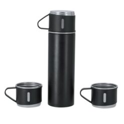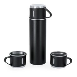 Termos 420 ml i 3 kubki 140 ml z nadrukiem Twojego logo, materiał: stal nierdzewna, stal, kolor: czarny