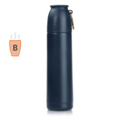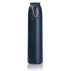 Termos 500 ml Air Gifts z karabińczykiem | Matthew z nadrukiem Twojego logo, materiał: pp, stal nierdzewna, silikon, stal, kolor: ciemnoniebieski