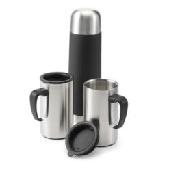 Termos 500 ml i 2 kubki 300 ml z nadrukiem Twojego logo, materiał: plastik, stal nierdzewna, stal, kolor: czarny