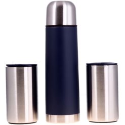 Termos 500 ml i 2 kubki 300 ml z nadrukiem Twojego logo, materiał: plastik, stal nierdzewna, stal, kolor: granatowy