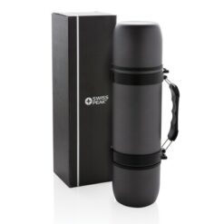 Termos 700 ml, 2 kubki Swiss Peak z nadrukiem Twojego logo, materiał: stal nierdzewna, stal, kolor: szary