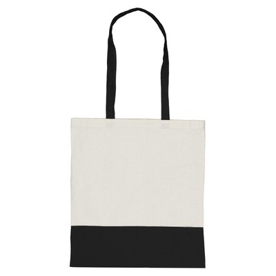 Torba na zakupy, posiada długie uchwyty umożliwiające noszenie na ramieniu, produkt wykonany z bawełny o gramaturze 140 g/m2