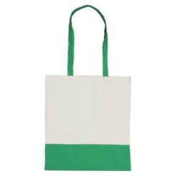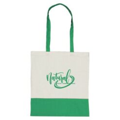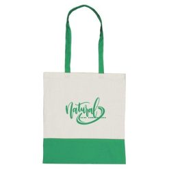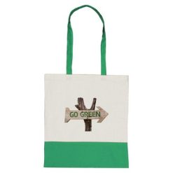 Torba na zakupy, posiada długie uchwyty umożliwiające noszenie na ramieniu, produkt wykonany z bawełny o gramaturze 140 g/m2
