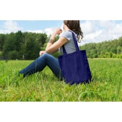 Torba na zakupy, posiada długie uchwyty umożliwiające noszenie na ramieniu, produkt wykonany z bawełny o gramaturze 140 g/m2