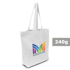 Torba na zakupy z szerokim dnem, posiada długie uchwyty wykonane z brezentu (długość 70 cm, szerokość 40 mm) umożliwiające noszenie na ramieniu, produkt wykonany z bawełny o gramaturze 240 g/m²
