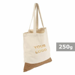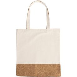 Torba bawełniana na zakupy z korkowym elementem z nadrukiem Twojego logo, materiał: korek, bawełna, kolor: beżowy