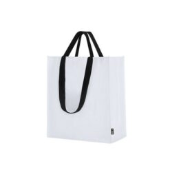 Torba na zakupy, posiada długie uchwyty umożliwiające noszenie na ramieniu, produkt wykonany z laminowanej PP-woven RPET