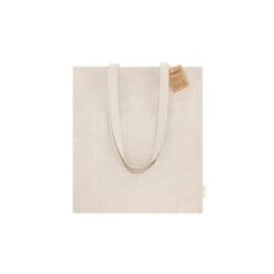 Torba na zakupy, posiada długie uchwyty umożliwiające noszenie na ramieniu, produkt wykonany z bawełny z recyklingu 260 g/m2
