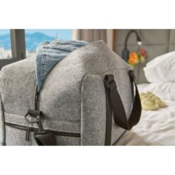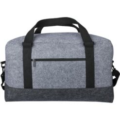 Torba sportowa, podróżna RPET, z płóciennymi uchwytami do przenoszenia i regulowanym paskiem na ramię, posiada dużą komorę zapinaną na zamek, mała kieszeń na zamek z przodu, ikona RPET na metce, pojemność: 30L, maksymalne obciążenie: 10 kg, produkt wykonany z filcu RPET