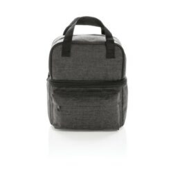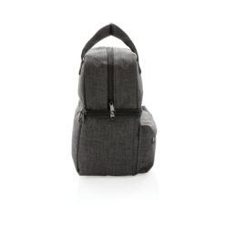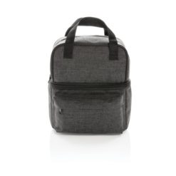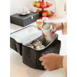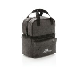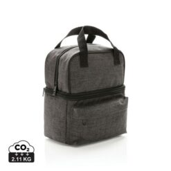 Torba termoizolacyjna z uchwytami i 2 przegrodami, wykonana z poliestru 600D, górna przegroda do owoców i przekąsek oraz dolna przegroda zmieści do 6 puszek 0,33l, przednia kieszeń na zamek błyskawiczny, ślad węglowy produktu: 2,11 kg CO2