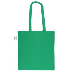 Torba na zakupy B’RIGHT, posiada długie uchwyty umożliwiające noszenie na ramieniu, produkt wykonany z bawełny z recyklingu o gramaturze 200 g/m² i poliestru z recyklingu, zgodna z certyfikatem GRS (Global RecycIed Standard)