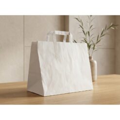 Torba z papieru z płaskimi uchwytami, wykonana z białego papieru