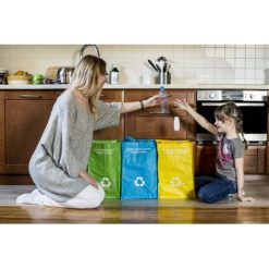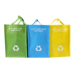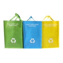 Zestaw 3 toreb do segregacji szkła, papieru i plastiku, torby posiadają nadruk z przodu i z tyłu