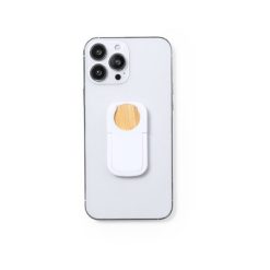 Uchwyt do telefonu, stojak na telefon, bambusowy żeton do wózka na zakupy z nadrukiem Twojego logo, materiał: plastik, bambus, kolor: biały