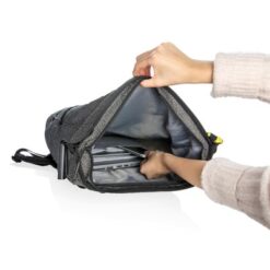 Plecak chroniący przed kieszonkowcami z ochroną RFID Urban, materiał odporny na przecięcia, zwijana przegroda główna i zamek szyfrowy wzmocniony stalą umożliwiający całkowite zamknięcie plecaka, zamek może posłużyć również do przypięcia plecaka do stałego obiektu, ukryte kieszenie do przechowywania dokumentów i kart kredytowych z tyłu torby oraz w pasku na ramię z ochroną RFID, kieszeń boczna, odpinana elastyczna siatka na sprzęt sportowy w komplecie, wewnątrz miękkie przegrody na laptopa 15,6″, tablet do 12,9″, siateczkowe kieszenie na inne przedmioty osobiste, wzór zastrzeżony®