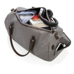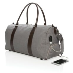 Weekendowa torba sportowa, podróżna, wykonana z poliestru 600D, uchwyty z PU, łatwo dostępna kieszeń, wygodny pasek na ramię, pojemna przegroda główna mieszcząca wszystkie niezbędne akcesoria, zintegrowane gniazdo USB do ładowania telefonów (power-bank nie jest dołączony), nie zawiera PVC, ślad węglowy produktu: 4,7 kg CO2
