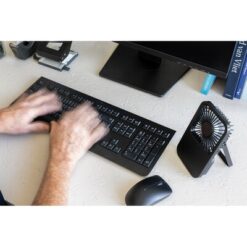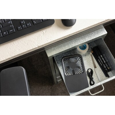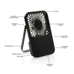 Wentylator kieszonkowy, wentylator biurkowy, wykonany z ABS z recyklingu, do 3 godzin działania na jednym ładowaniu, kabel w komplecie, całkowita zawartość materiałów z recyklingu obliczona na podstawie masy całkowitej produktu: 58%