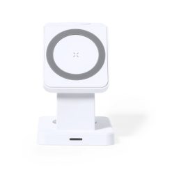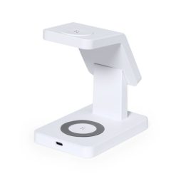 Magnetyczna ładowarka bezprzewodowa 15W, 3 w 1, stojak na telefon z nadrukiem Twojego logo, materiał: plastik, kolor: biały