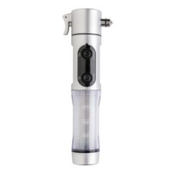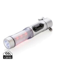 Latarka bezpieczeństwa, obudowa wykonana z ABS, 1 biała dioda LED oraz 9 czerwonych migających na boku, przecinak do pasów, młotek bezpieczeństwa, magnetyczna podstawka do przymocowania do karoserii samochodu, ślad węglowy produktu: 1,29 kg CO2