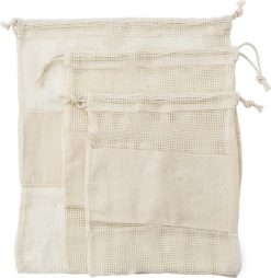 Zestaw woreczków na owoce i warzywa z bawełny organicznej, 3 szt. z nadrukiem Twojego logo, materiał: bawełna, kolor: neutralny