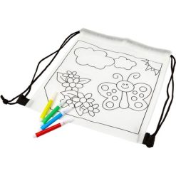 Worek ze sznurkiem do kolorowania, flamastry z nadrukiem Twojego logo, materiał: non-woven, kolor: biały