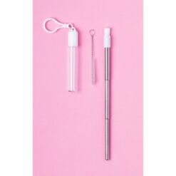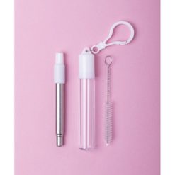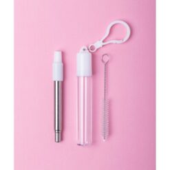 Wysuwana słomka wielokrotnego użytku ze stali nierdzewnej i silikonowym ustnikiem, czyścik i etui z karabińczykiem w komplecie
