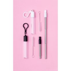 Wysuwana słomka wielokrotnego użytku ze stali nierdzewnej i silikonowym ustnikiem, czyścik i etui z karabińczykiem w komplecie