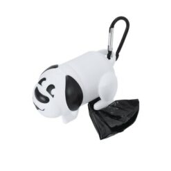 Zasobnik z 15 woreczkami na psie odchody, zasobnik w kształcie psa, posiada karabińczyk umożliwiający przypinanie, produkt wykonany z PP