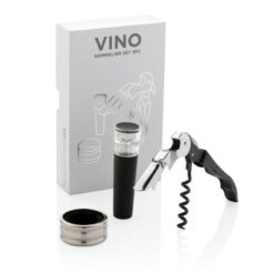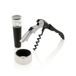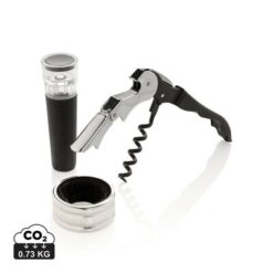 Zestaw akcesoriów do wina 3 el.: korkociąg, nóż do folii, pierścień, w ozdobnym pudełku, ślad węglowy produktu: 0,73 kg CO2