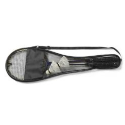 Zestaw do badmintona, 2 rakiety ze stalowymi ramami i plastikowymi rączkami, 2 lotki, czarny pokrowiec z paskiem na ramię