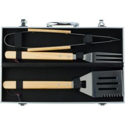 Zestaw do grilla w etui, zawiera: widelec, szpatułka, szczypce
