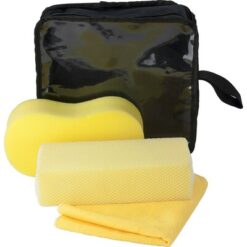 Zestaw do mycia samochodu w pokrowcu, w komplecie: gąbka, gąbka z siateczką i szmatka z mikrofibry (35 x 35 cm)