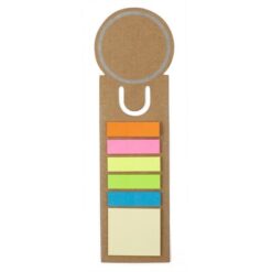 Zestaw do notatek z nadrukowaną linijką 13 cm / 5 cali i zakładka do książki w jednym, dzięki dedykowanemu miejscu pod znakowanie logotyp lub hasło reklamowe może pozostać widoczne nawet po włożeniu do książki, w komplecie znajdują się także małe karteczki samoprzylepne w 5 kolorach oraz notes 4 x 4,5 cm, produkt wykonany z kartonu i papieru
