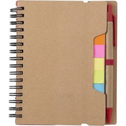 Zestaw do notatek, notatnik (60 stron z papieru z recyklingu w linie), długopis, linijka i 125 karteczek samoprzylepnych (25 szt. z każdego koloru), spiralne bindowanie