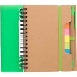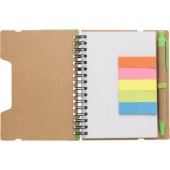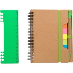 Zestaw do notatek, notatnik (60 stron z papieru z recyklingu w linie), długopis, linijka i 125 karteczek samoprzylepnych (25 szt. z każdego koloru), spiralne bindowanie