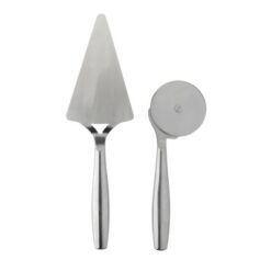 Zestaw do pizzy, nóż i łopatka, wykonany ze stali nierdzewnej, nadaje się również do krojenia wypieków, posiada dożywotnią gwarancję, nadaje się do mycia w zmywarce