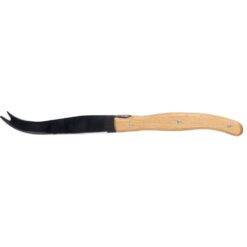 Zestaw do wędlin w etui zamykanym na rzep, zawierający trzy noże ze stali nierdzewnej z drewnianymi uchwytami, wewnątrz znajduje się ikona RPET na metce, bezpieczny w kontakcie z żywnością, indywidualnie pakowany w brązowe kartonowe pudełko, produkt wykonany z RPET