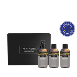 Zestaw kosmetyków Body & Fragnance Mailbox TREATMENTS, przeznaczony dla kobiet i mężczyzn, w zestawie znajduje się: mgiełka do ciała i pościeli 50 ml, olejek do ciała 50 ml, żel pod prysznic do włosów i ciała 50 ml, elegancki, papierowy kartonik, w którym zapakowane są kosmetyki, sprawdzą się w codziennej pielęgnacji, dostępne są różne warianty zapachowe: 03 – Ceylon, 06 – Mahayana, 11 – Uyuni, 19 – Shinshiro. Znakowanie produktu jest możliwe tylko na srebrnej lub złotej folii z czarnym nadrukiem albo na czarnej apli ze srebrnym lub złotym nadrukiem.