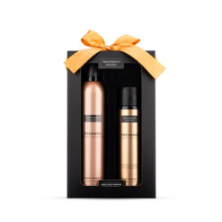Zestaw kosmetyków Tenderness TREATMENTS, w zestawie znajduje się: pieniący się żel pod prysznic 200 ml, balsam do ciała 250 ml, elegancki, papierowy kartonik, w którym zapakowane są kosmetyki, sprawdzą się w codziennej pielęgnacji, dostępne są różne warianty zapachowe: 03 – Ceylon, 06 – Mahayana, 08 – Omani, 11 – Uyuni, 16 – Zhejinag, 19 – Shinshiro, 21 – Verona, 98 – Samoa. Znakowanie produktu jest możliwe tylko na srebrnej lub złotej folii z czarnym nadrukiem albo na czarnej apli ze srebrnym lub złotym nadrukiem.
