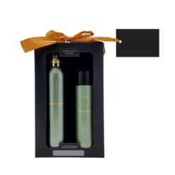 Zestaw kosmetyków Tenderness TREATMENTS, przeznaczony dla kobiet i mężczyzn, w zestawie znajduje się: pieniący się żel pod prysznic 200 ml, balsam do ciała 250 ml, elegancki, papierowy kartonik, w którym zapakowane są kosmetyki, sprawdzą się w codziennej pielęgnacji, dostępne są różne warianty zapachowe: 03 – Ceylon, 06 – Mahayana, 08 – Omani, 11 – Uyuni, 16 – Zhejinag, 19 – Shinshiro, 21 – Verona, 98 – Samoa. Znakowanie produktu jest możliwe tylko na srebrnej lub złotej folii z czarnym nadrukiem albo na czarnej apli ze srebrnym lub złotym nadrukiem.