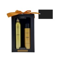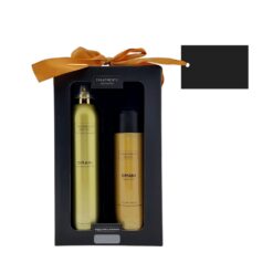 Zestaw kosmetyków Tenderness TREATMENTS, przeznaczony dla kobiet i mężczyzn, w zestawie znajduje się: pieniący się żel pod prysznic 200 ml, balsam do ciała 250 ml, elegancki, papierowy kartonik, w którym zapakowane są kosmetyki, sprawdzą się w codziennej pielęgnacji, dostępne są różne warianty zapachowe: 03 – Ceylon (połączenie zapachów starożytnego Cejlonu z kwiatem owoców i jaśminem), 06 – Mahayana (aromat hiacyntów oraz korzenne nuty piżma i drzewa sandałowego), 08 – Omani (oddaje klimat Omanu – jego plaż, bezkresnych pustyń oraz drzewa sandałowego), 11 – Uyuni (lawenda, irys i drzewne nuty, które przenoszą w atmosferę Salar de Uyuni), 16 – Zhejiang (połączenie zapachu kaszmeranu z wanilią bourbon i jaśminem), 19 – Shinshiro (fasola tonki uzupełniona słodkimi aromatami i wonią kwiatów ryżu), 21 – Verona (romantyczny kwiatowy zapach łączący jaśmin i piwonię), 98 – Samoa (rajski zapach Samoa wzbogacony słodkim piżmem). Znakowanie produktu jest możliwe tylko na srebrnej lub złotej folii z czarnym nadrukiem albo na czarnej apli ze srebrnym lub złotym nadrukiem.