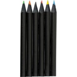 Zestaw 6 kredek z ozdobnym czarnym trzonem, zapakowane w czarny kartonik z recyklingu