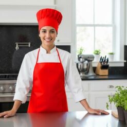 Zestaw małego kucharza, fartuch kuchenny i czapka kucharska, rozmiar dziecięcy | Nedina z nadrukiem Twojego logo, materiał: non-woven, kolor: czerwony