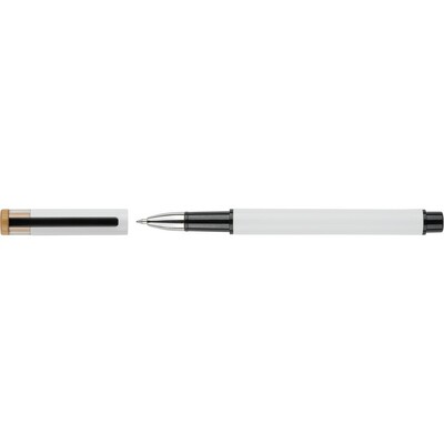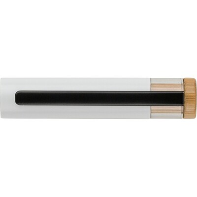 Zestaw piśmienniczy, długopis i pióro kulkowe z nadrukiem Twojego logo, materiał: metal, aluminium, bambus, rpet, kolor: biały