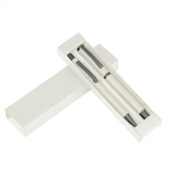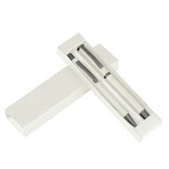 Zestaw piśmienniczy, długopis i pióro kulkowe | Elliot z nadrukiem Twojego logo, materiał: plastik, aluminium, kolor: biały
